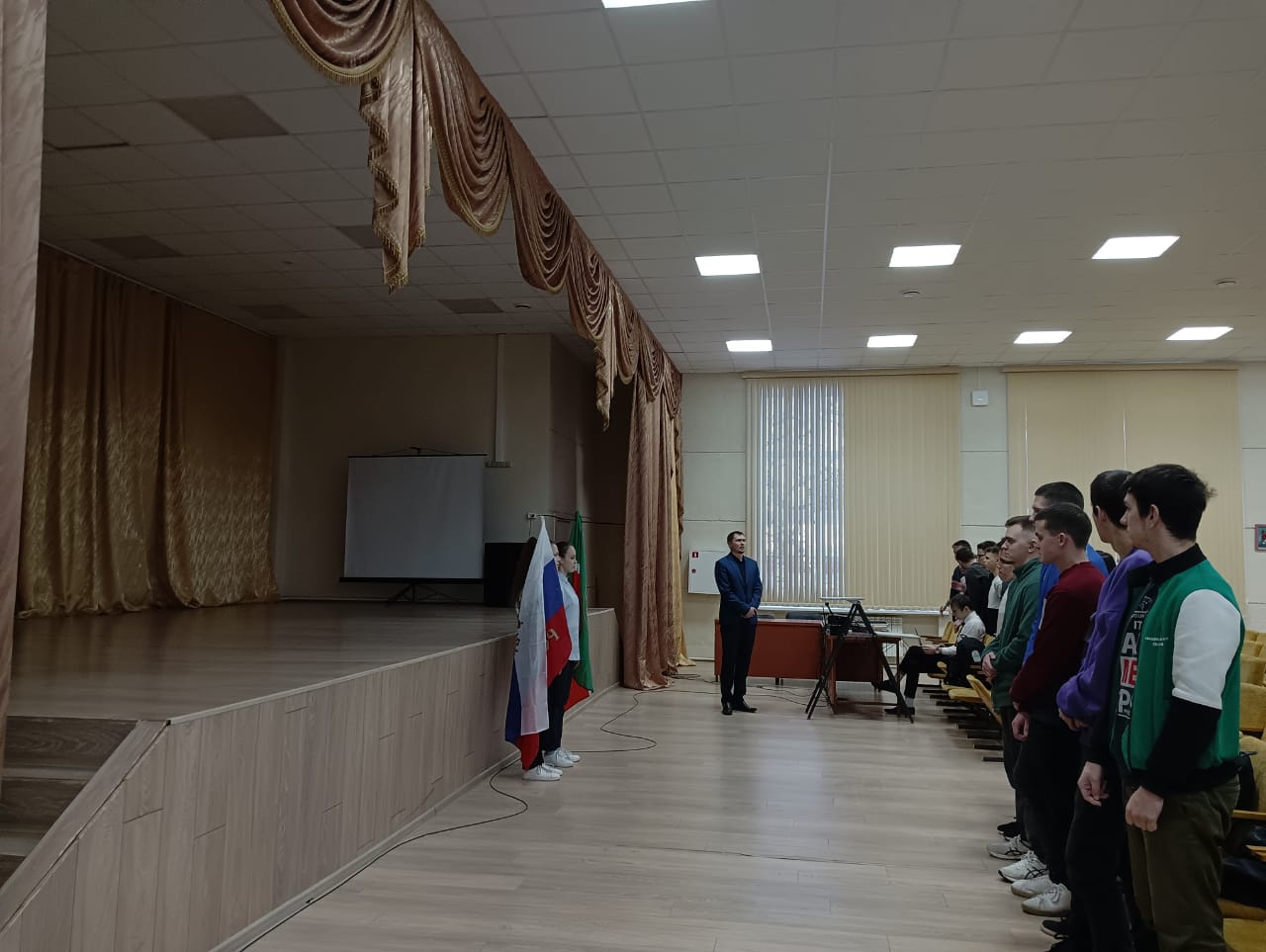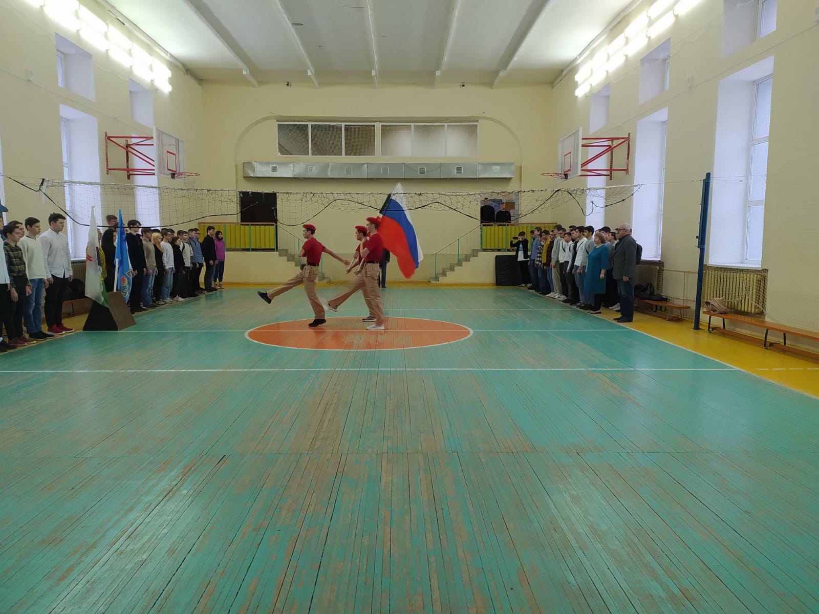 По понедельникам, перед началом урока проходит церемония выноса флага РФ и РТ.