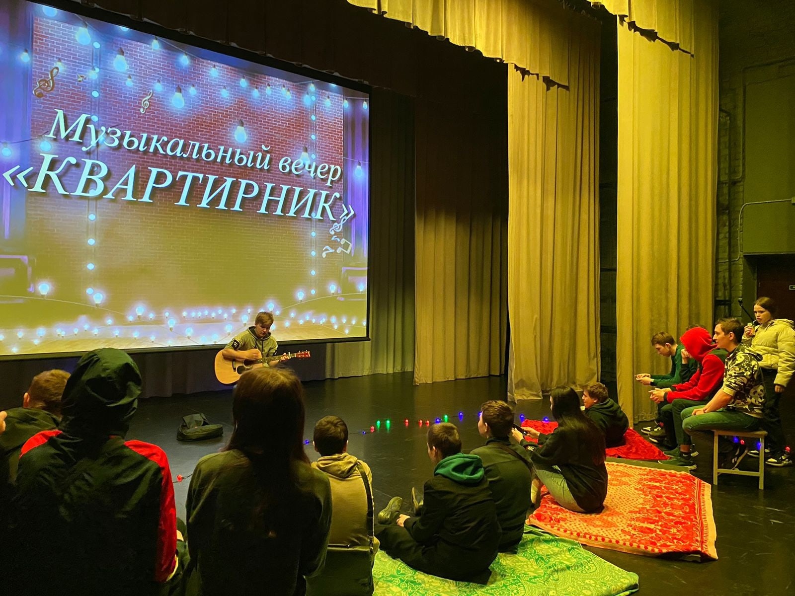 Опубликовано: 03.04.2023 В Молодежном центре прошел самый душевный и музыкальный вечер «Квартирник» для студентов филиала колледжа, на котором звучала музыка, свободная от жанров и форм. Пространство было наполнено уютом, светом, душевной атмосферой и гармонией. Приятные голоса, звучание струнных инструментов – все это окутало волшебством присутствующих. Участники музыкального вечера сами создали чудесную атмосферу.
