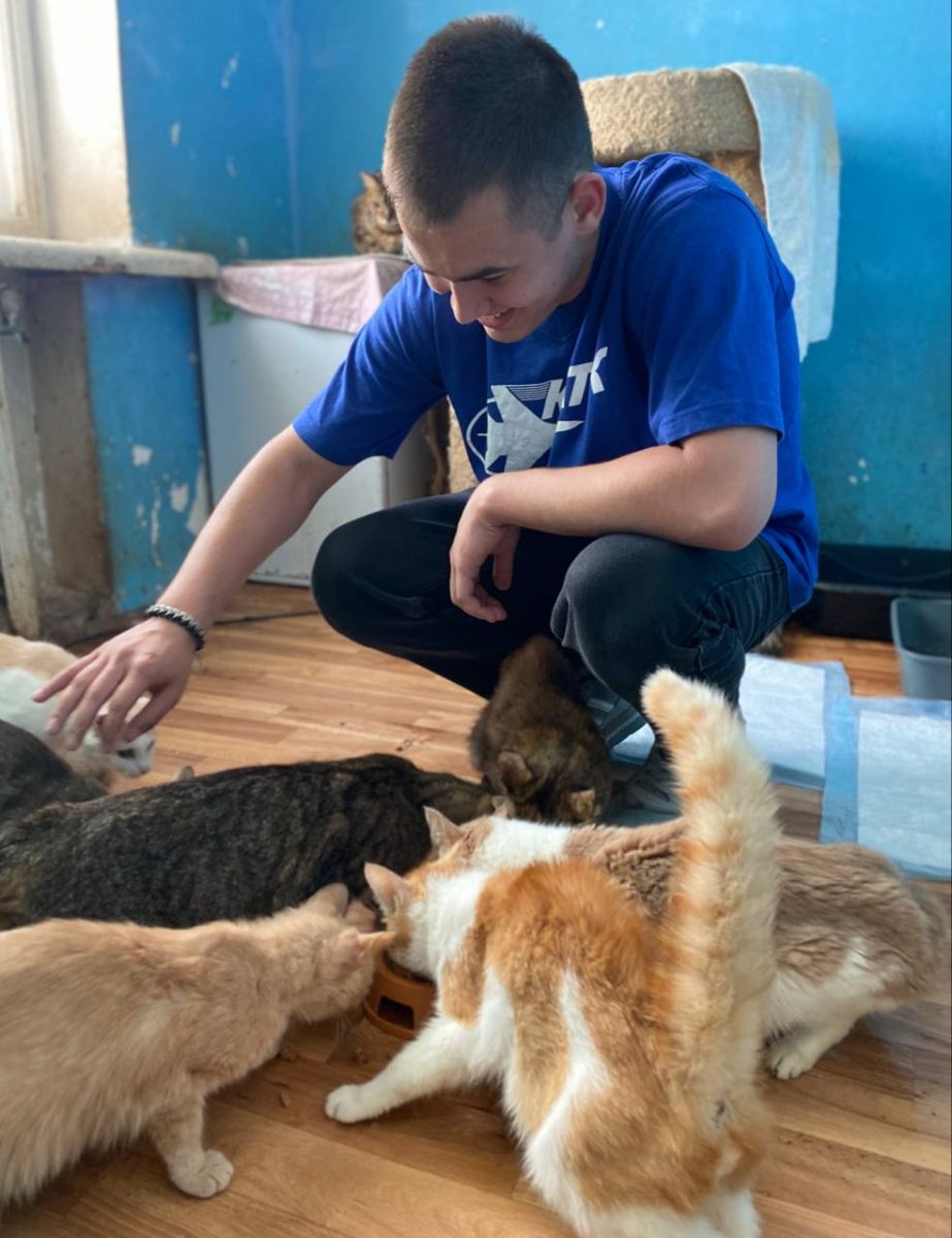 Опубликовано: 22.05.2023Студенты из волонтерского отряда «Крылья» в очередной раз посетили приют для бездомных кошек. Ребята привезли кошкам корм, также уделили животным внимание, погладили питомцев и поиграли с ними. Подопечные приюта нуждаются в человеческой заботе. Волонтеры планируют и дальше помогать приюту и будут рады любой помощи наших студентов! Особенно нужны: