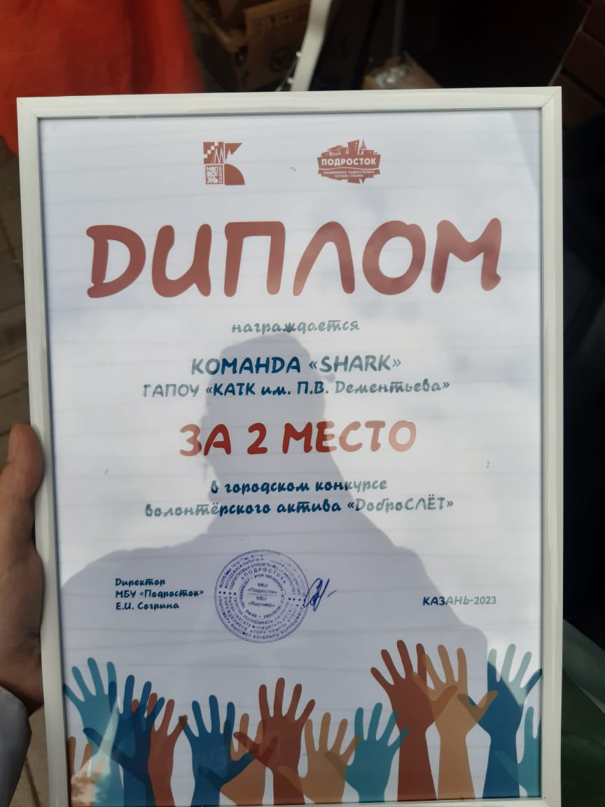 Опубликовано: 01.06.2023Студенты нашего колледжа в течение двух месяцев участвовали в Городском конкурсе волонтерского актива «ДоброСЛЁТ», за это время они провели немало акций связанных с волонтерским движением, познакомились с интересными людьми нашего города, побывали на разных интересных площадках. 1 июня на закрытии конкурса были подведении итоги, по которым студенты нашего здания заняли 2 место, ребятам вручили диплом и подарки от спонсоров мероприятия.