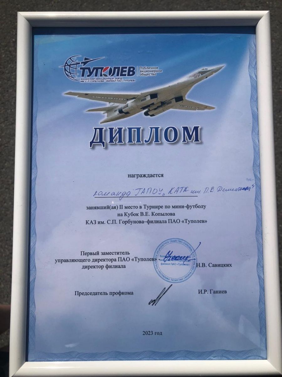 Опубликовано: 17.06.2023В субботу, 17 июня на стадионе «Тасма» прошёл турнир по мини-футболу на "Кубок им. В.Е. Копылова КАЗ им. С.П. Горбунова 2023 г.", где наша сборная КАТК играла в полном составе. Ребята боролись до конца, выступив достойно на соревнованиях. По итогам турнира наша команда завоевала 2 место!!!