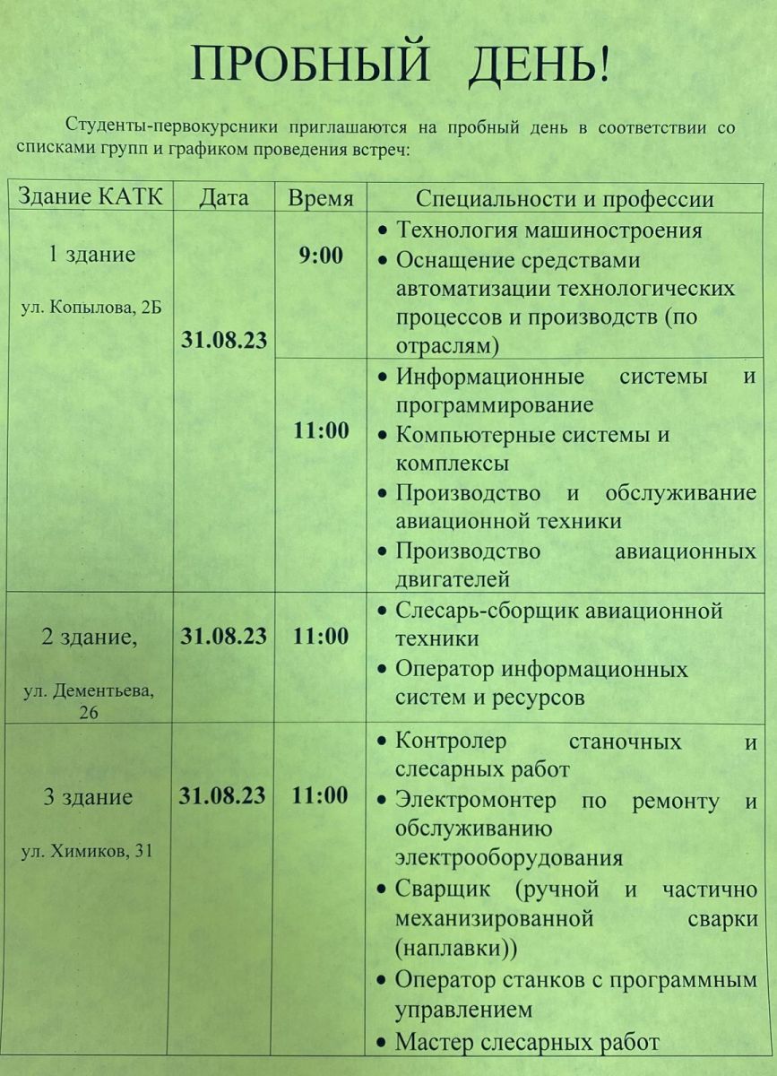 Опубликовано: 22.08.2023Колледж проводит организационное собрание / пробный день для зачисленных на 1 курс студентов. Просим обратить особое внимание на место проведения собрания.
