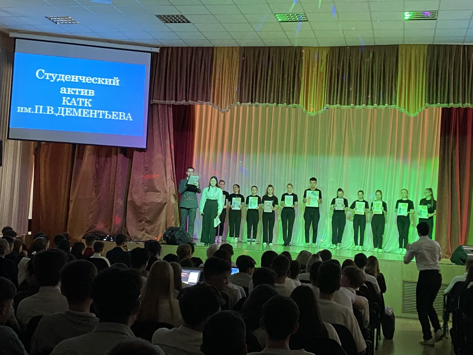 Ребята представили презентацию своей группы, показали творческие номера и в заключении праздника им вручены студенческие билеты. Общее фото на память – и ты студент КАТК!