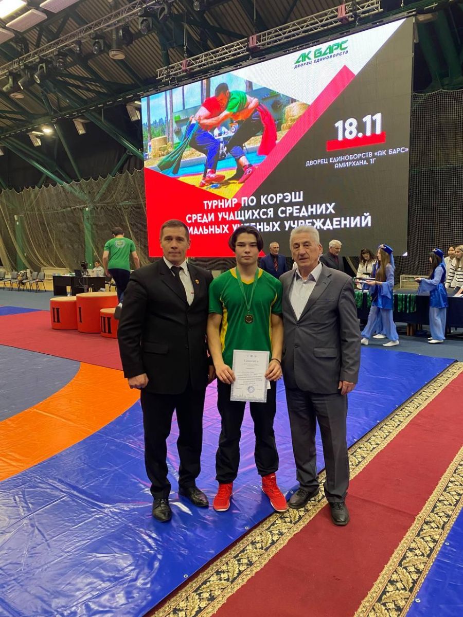 Опубликовано: 20.11.2023В рамках Всероссийского физкультурно-спортивного комплекса «Готов к труду и обороне» (ГТО) в Республике Татарстан Бадертинов Инсаф студент группы 22И1 занял первое место в финальных соревнованиях по борьбе «Корэш» Спартакиады обучающихся профессиональных образовательных организаций республики Татарстан 2023/2024 учебном году.