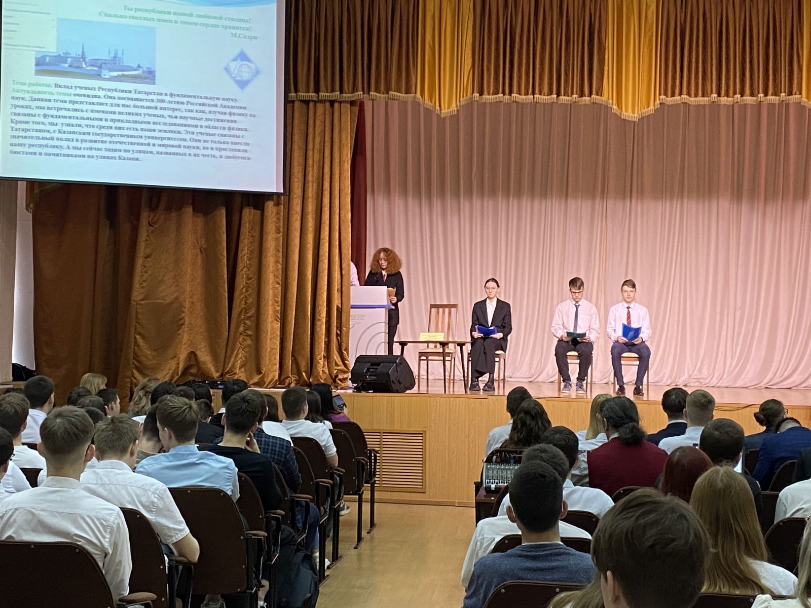 На пленарном заседании выступили первокурсники. Они подготовили доклад на тему «Вклад ученых Республики Татарстан в фундаментальную науку».