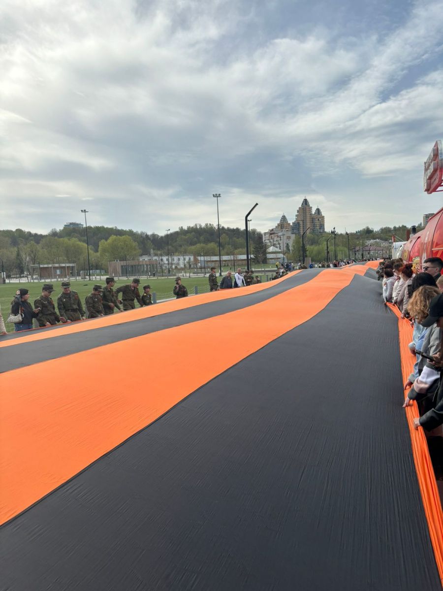 Опубликовано: 25.04.202425 апреля наши студенты-волонтеры добровольческого отряда “Крылья” приняли участие в акции и развернули самую большую в России Георгиевскую ленту, длина которой составляет 300 метров. Ленту раскрыли и колонной пронесли по набережной реки Казанка.