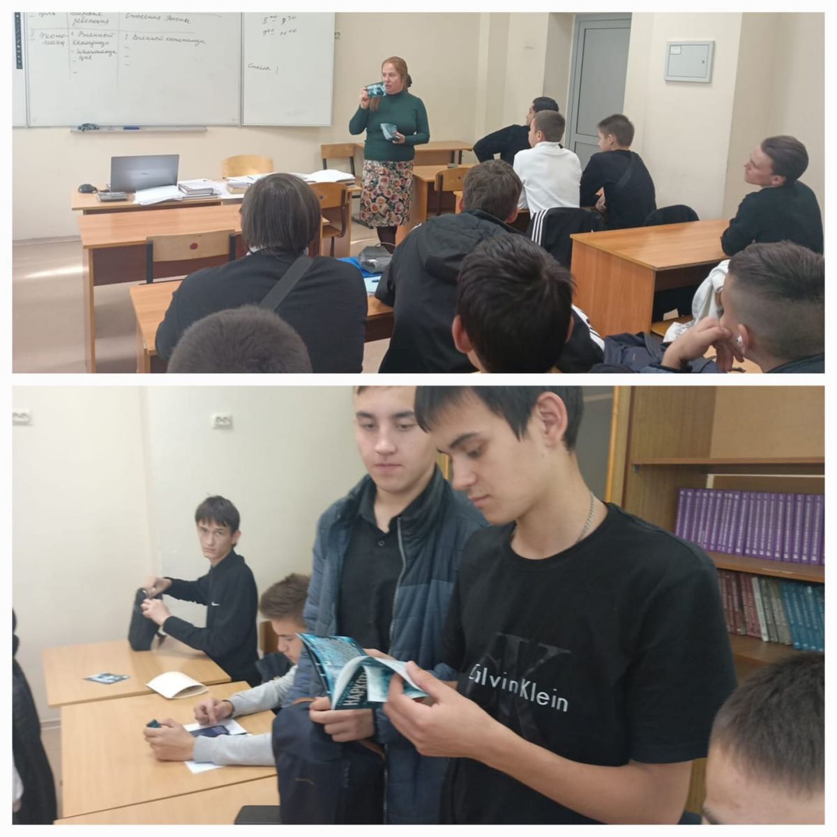 Опубликовано: 03.10.2024Сегодня педагог-психолог колледжа Якушина Вероника Ихсановна провела профилактические беседы со студентами 1 курсов на предмет предстоящего дистанционного обучения, также говорили об употреблении ПАВ и действия на организм человека. Студентам раздали памятки-книжки «Правда о наркотиках. Наркотики разрушают и калечат миллионы человеческих жизней каждый год. Что вам стоит знать о них? Факты, которые вам нужно знать»