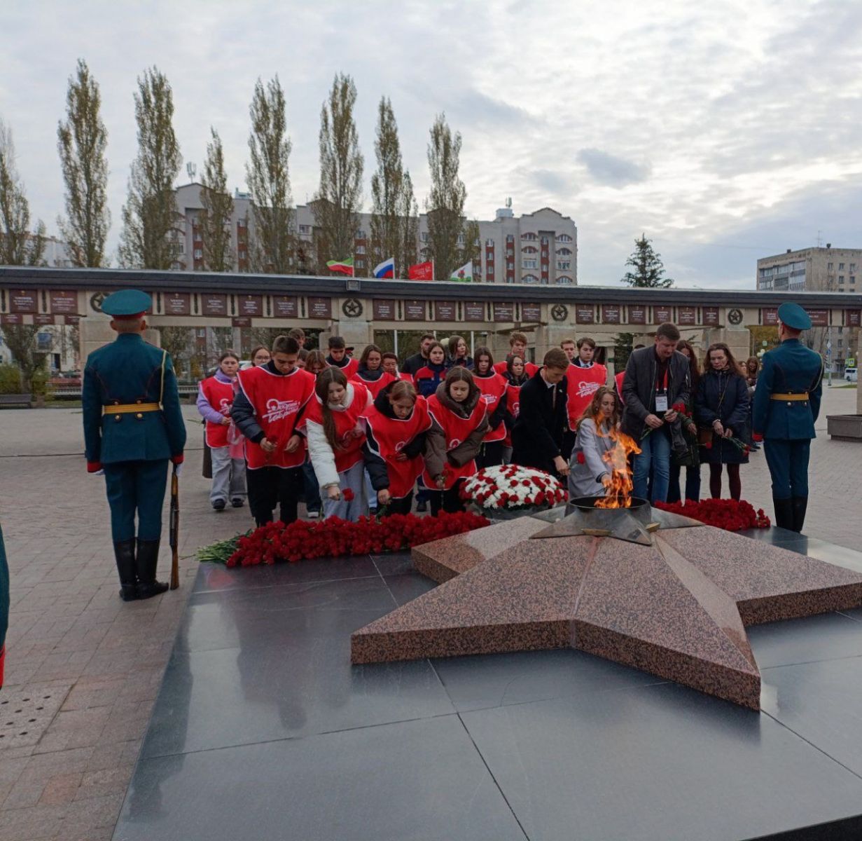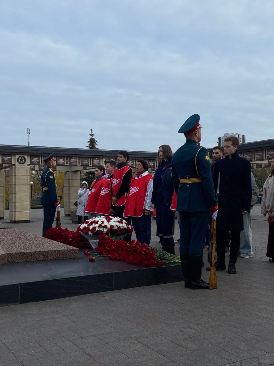 Наши волонтёры сопровождали гостей, возложили цветы к вечному огню и делились теплом и уважением к памяти героев
