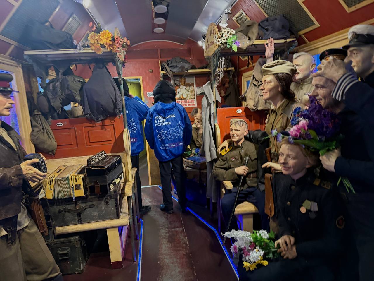 Наши добровольцы принимают участие в организации уникального проекта — выставки-поезда «Поезд Победы». Это не просто музейные стенды, а настоящая движущаяся экспозиция! В составе 10 тематических вагонов. Каждый из них — это портал в прошлое. Наши ребята помогают гостям ориентироваться, следят за порядком и делятся информацией о экспозиции. Для нас честь быть частью такого важного дела по сохранению памяти. #ПоездПобеды #ВолонтерыПобеды #ПамятьНарода #ВОВ #ИсторияРоссии #Добро