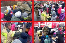 Сегодня в нашем детском саду совместно с пожарной частью № 5 прошли пожарно - тактические учения. Цель- отработка действий сотрудников детского сада и пожарных в случае возникновения пожара. Условия были максимально приближены к реальным. С поставленной целью все справились. По окончанию учений пожарные познакомили воспитанников с устройством пожарной машины, продемонстрировали оборудование, которое используется при тушении пожара. Дети смогли подержать все в руках а также померить шлем и кислородную маску.