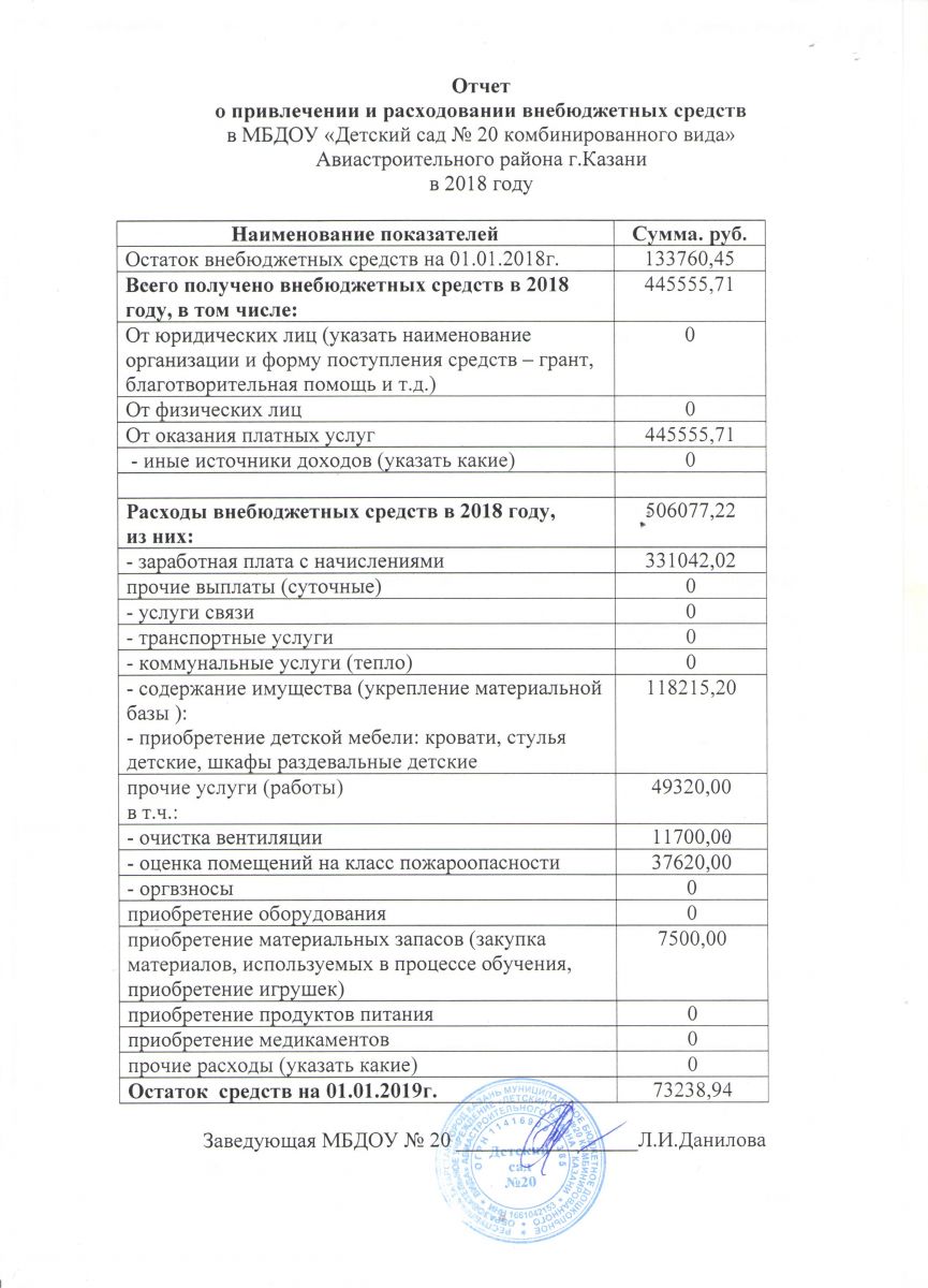 Отчет о привлечении и расходовании внебюджетных средств за 2018г