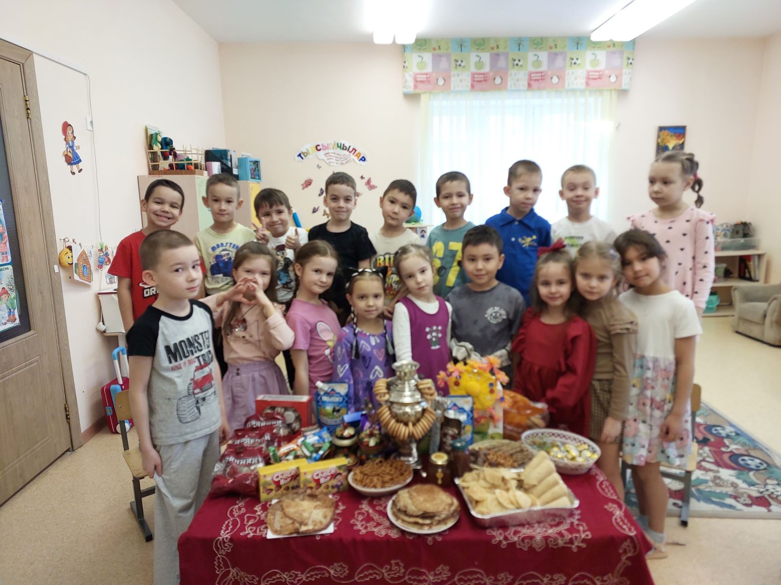 Безнең балалар бакчасында күңелле Май чабу узды! Балалар рәхәтләнеп тәмле коймак ашадылар, якты әйлән-бәйлән уйнадылар.