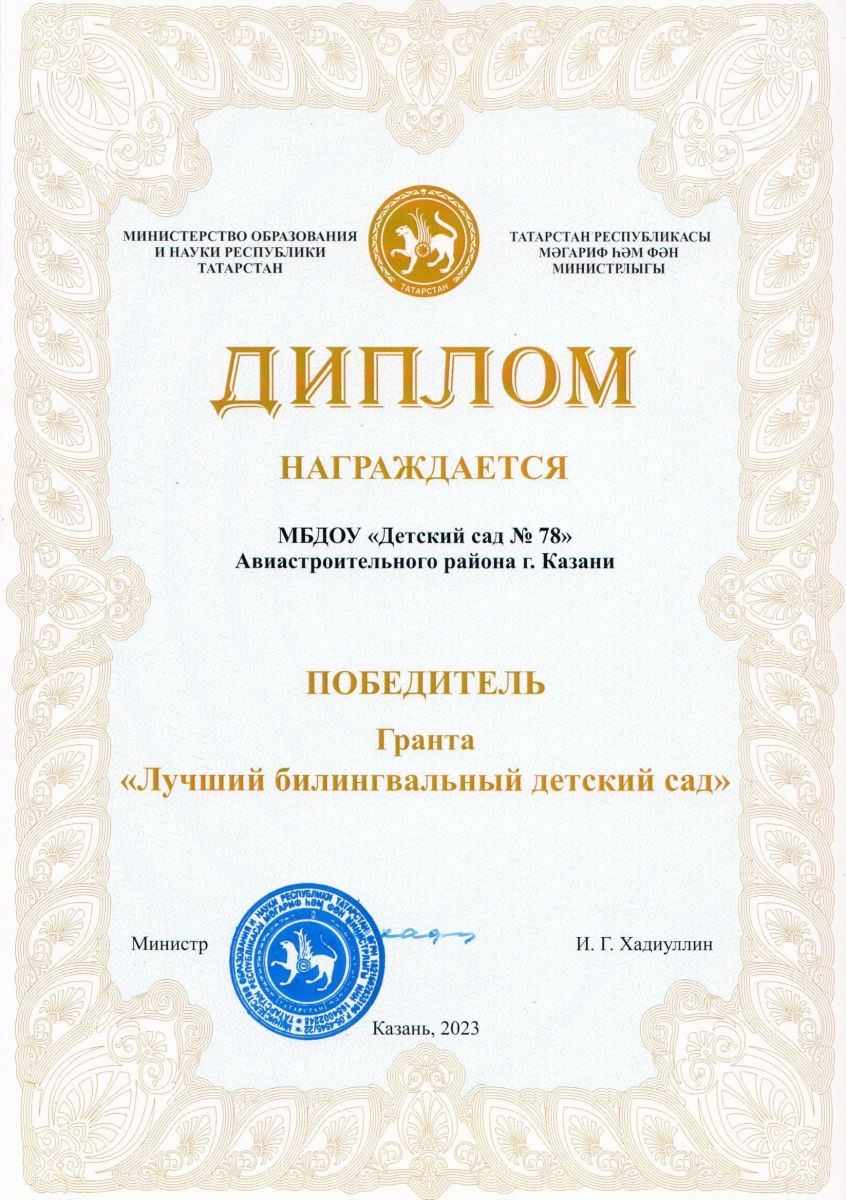 Грант "Лучший билингвальный детский сад - 2023" 15.06.2023