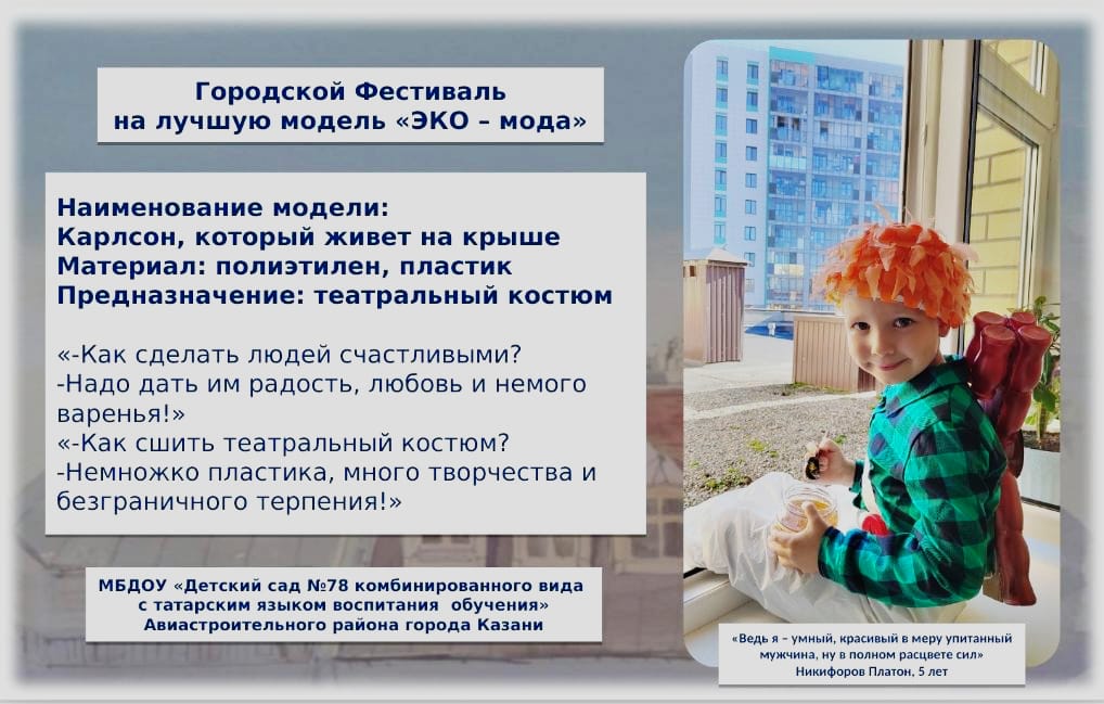 Воспитанника 4 группы Никифорова Платона и педагогов Айсылу Гаптелнуровну и Римму Фанилеву поздравляю с 3 местом в районном конкурсе «ЭКО-Мода». Дальнейших успехов и побед!