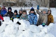 Заснеженная зима поистине чудное время для забав. Весело и с удовольствием дети нашего детского сада построили из снега целую крепость