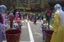 Сегодня в нашем детском саду состоялось награждение всех возрастных групп, которые принимали активное участие в конкурсе "Цветущий детский сад". В течение месяца дети, родители, сотрудники детского сада помогали в благоустройстве территории детского сада. Высаживали цветы, кустарники, делали клумбы, создавали оригинальные фигурки на детских площадках.