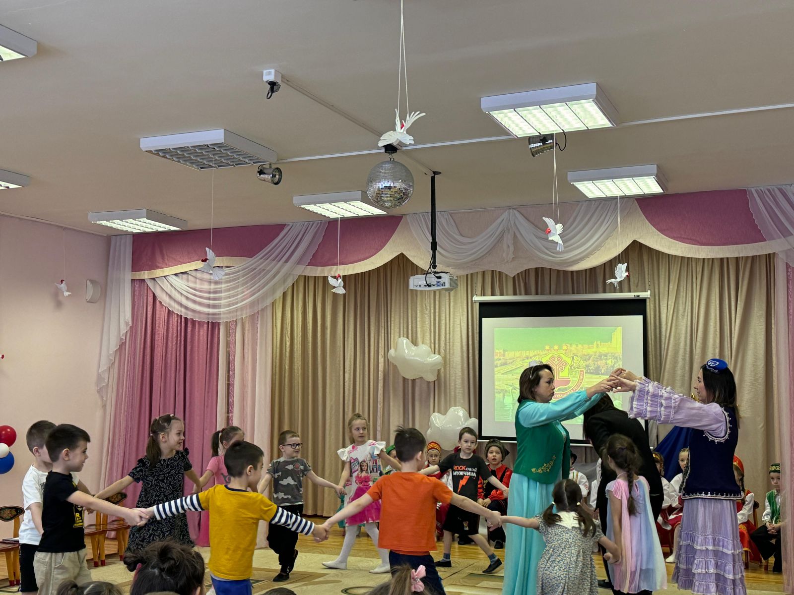 Дети с радостью участвовали в татарских народных играх, воспитатели подготовили яркие костюмы и музыкальное сопровождение, что создало праздничное настроение.