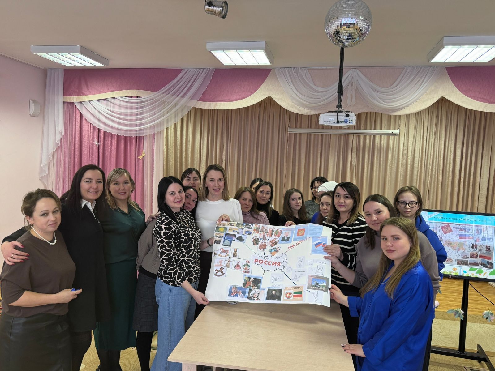 Сегодня в нашем коллективе состоялся педагогический совет на тему «Воспитание патриотизма и основ гражданственности у детей дошкольного возраста на основе ФОП ДО». Мероприятие прошло в атмосфере активного обсуждения и обмена опытом среди педагогов.Педагоги представили важные доклады, подчеркнув значимость патриотического воспитания в формировании личности ребенка.Особое внимание было уделено созданию интеллектуальной карты по патриотическому воспитанию. Коллеги совместно разработали карту, которая станет полезным инструментом в повседневной работе с дошкольниками.Кроме того, педагоги приняли участие в деловой игре, направленной на практическое применение теоретических знаний. Педсовет стал важной площадкой для профессионального роста и укрепления командного духа среди педагогов.
