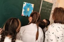 В рамках акции «Зажги синим» в 4а классе проводилось мероприятие «Синяя ромашка», где дети на лепестках писали самое главное качество человека, которого они увидели в секретной коробке, где было спрятано зеркало.