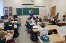 В начальной школе выступила ведущий специалист отдела по обеспечению координации и взаимодействия подразделений социальной сферы О.В.Алтынова. Тема выступления: "Пропаганда здорового образа жизни".