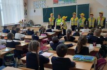 Перед учащимися начальной школы выступила агитбригада ЮИД на тему "Безопасная дорога".