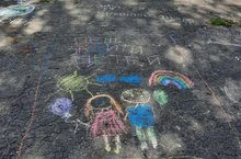 "Кояшкай" мәктәп лагеренда балаларны яклау көненә багышлап асфальтта рәсемнәр ясалды.