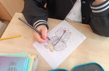 На занятии, приуроченном к Неделе инклюзивного образования, учащиеся 1 класса, делали картины из клякс.
