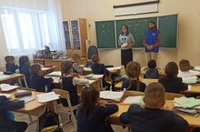 13 января 2022 года перед учащимися начальной школы выступили специалист ГБУ "БДД" Садриева А. и инспектор ОПБДД ОГИБДД УМВД России по г Казани лейтенант полиции Хамдеева Г.