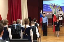 Сегодня в актовом зале гимназии традиционно прошла церемония вноса государственных флагов Российской Федерации и Республики Татарстан