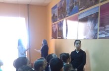 Ученики старших классов провели экскурсию для учеников начальной школы по выставке "Моя Россия", которая расположена в фойе второго этажа.Цель выставки – показать детям масштаб страны, ее красоту и неисчерпаемые природные богатства. На выставке представлено очень много мест, достойных восхищения! Север и юг, тундра и барханы, горы и гейзеры – все это наше богатство, наследие наших предков. Цель выставки – наглядно показать детям Россию, которой невозможно не гордиться. Со многими красотами России старшеклассники уже успели познакомиться на уроках географии, а вот некоторые достопримечательности они увидели в первый раз. Дети смогут поразить и своих родителей знаниями и заразить интересом к неисчерпаемым красотам России.