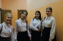 На каждой перемене ребята раздавали красные ленточки, которые стали символом мероприятия по всему миру.