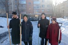 Ученики 8а и 9а классов почистили территорию школы от снега, спасибо, молодцы!