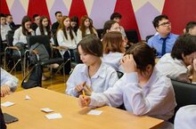 С такими интересными фактами и студенческими суевериями познакомились сегодня ученики 9-11 классов. Интеллектуальная игра «Студенческая пора» прошла сегодня в актовом зале нашей гимназии!