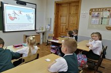 В предверии праздника «День народного единства» в 1 А классе прошёл классный час в нетрадиционной форме , в виде деловой игры «Россия-Родина моя». Дети в заключении исполнили гимн России.Классный руководитель: Чёрная Ольга Сергеевна -