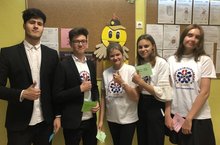19.09 в День Рождения Смайлика в поддержку акции «Поделись улыбкою своей» в рамках республиканского проекта SMS-дети(Самостоятельные дети) учащиеся старших классов раздавали младшим школьникам открытки со смайликами, желали быть всегда добрыми,открытыми,позитивными,заниматься физической активностью.