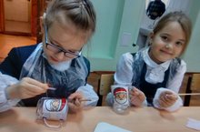 Мастера творческого центра «Акцент» провели для учеников 1б и 4а классов занятие по росписи кружек. Кл.руководитель – Якупова В.Г.