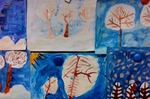 Ученики 1б класса на уроке ИЗО совершили заочную экскурсию в лес. Вот таким они увидели зимний наряд деревьев. Учитель – Якупова В.Г.