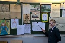 Ученик 3 а класса Тюлютин Виктор оформил школьную картинную галерею. Витя разместил на ней работы своего деда Алексея Антонова, мамы Татьяны Тюлютиной (Антоновой), учеников 3 а класса и провел увлекательную экскурсию. Молодец! Спасибо, Витя!