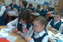 Ученики 2а и 3в класса изготовили сувенир - подставку для пасхальных яиц.