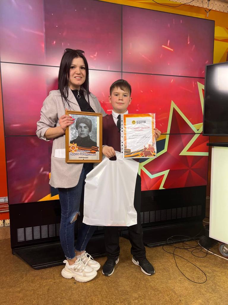 6 мая ученик 5а класса Валиев Даниил принял участие в акции "Бессмертный полк" на телеканале "Эфир". В своем выступлении он рассказал о прадедушке, герое Великой Отечественной войны. Смотреть фото, видео