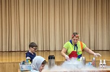 В гости к ребятам в пришкольный лагерь приходила тётя Люля, которая показала различные опыты и реакции. После чего она сделала мороженое, которым угостились все отряды!