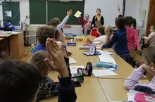 В осенние каникулы ученики 1“Б” класса готовились к конкурсу рисунков “Будьте бдительными на льду!” В первый же день после отдыха ребята принесли свою работу, рассказали одноклассникам, чем опасен первый лед. Хорошие получились рисунки!