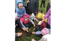 Ребята 2Б класса во дворе посадили саженцы европейской сосны.