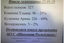 Итоги голосования 25.09.20 за кандидатов в президенты в ШУС «Школьная Республика» 25.09.2020