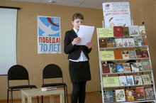 В гимназии 18.02.15 в рамках Года литературы 2015, прошла литературная конференция, посвященная 70-ю Победы. К участникам конференции обратилась заведующая библиотекой Пантелеймонова Нина Михайловна.