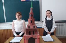 Первыми выступили Заботина Ева и Иванова Ника. Своими руками они сделали макет «Башни Сююмбике».