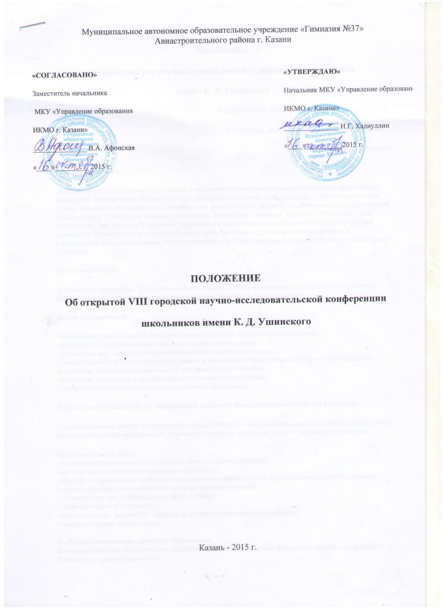 Городская научно-исследовательская конференция школьников имени К. Д. Ушинского 2015 г.