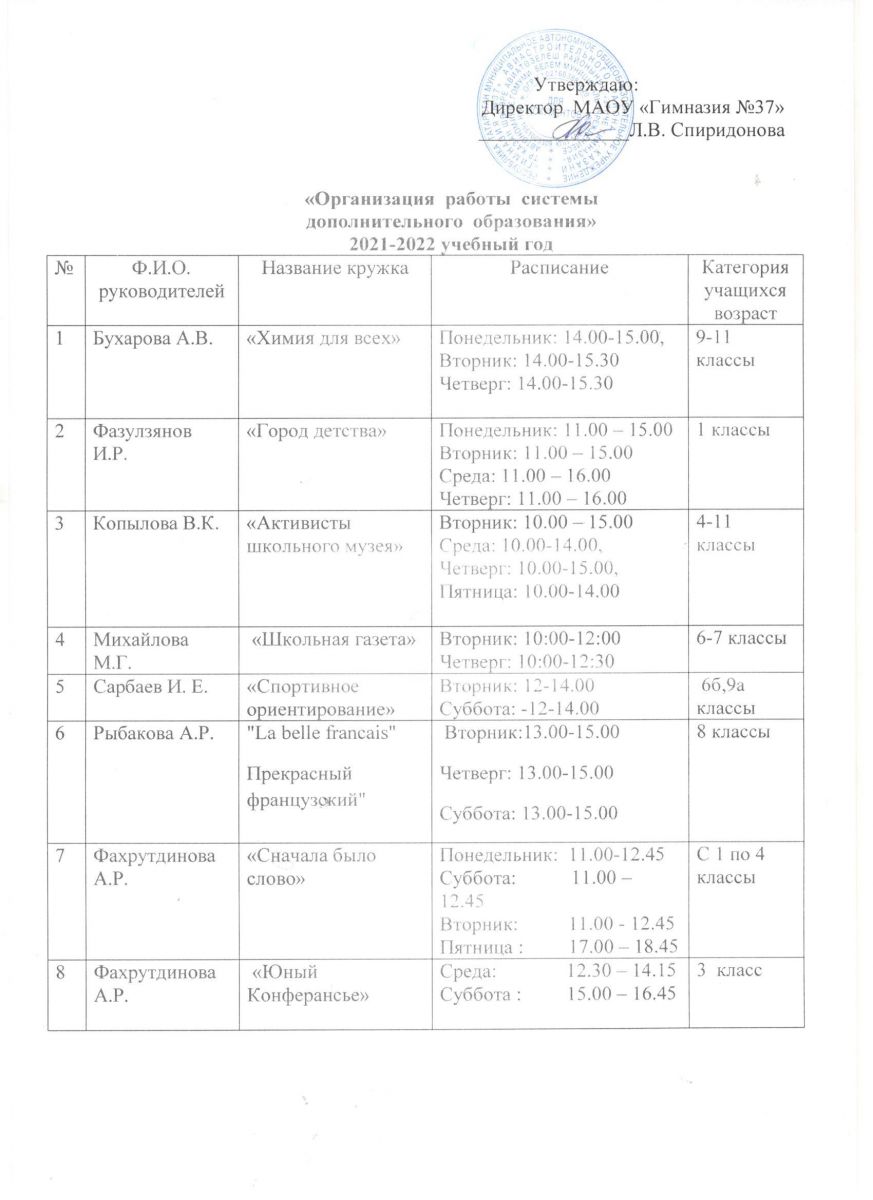 Организация работы системы дополнительного образования 2021-2022 учебный год
