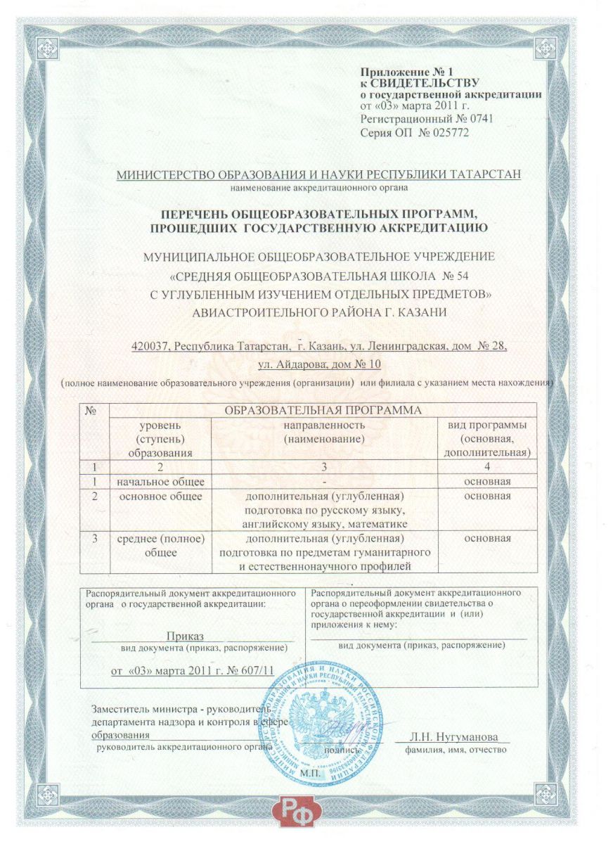 Муниципальное бюджетное общеобразовательное учреждение "Средняя общеобразовательная школа № 54 с углубленным изучением отдельных предметов" Авиастроительного района г. Казани/Казан шәһәре Авиатөзелеш районының "Аерым предметлар тирәнтен өйрәнелә торган 54 нче урта гомуми белем бирү мәктәбе" гомуми белем муниципаль бюджет учреждениесе