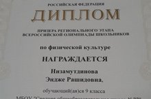 Поздравляем Низамутдинову Эндже, которая стала призером Регионального этапа Всероссийской олимпиады школьников по физической культуре. Молодец! 22.01.2017